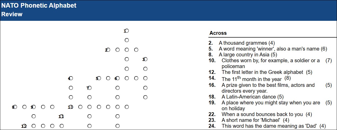 I'm trying to produce a crossword to reinforce memorisation of the NATO Phonetic alphabet. For some reason, the cells in which learners type answers display horribly, as small round circles (see attachment) Any suggestions for improving display, e.g. as conventional square boxes?
