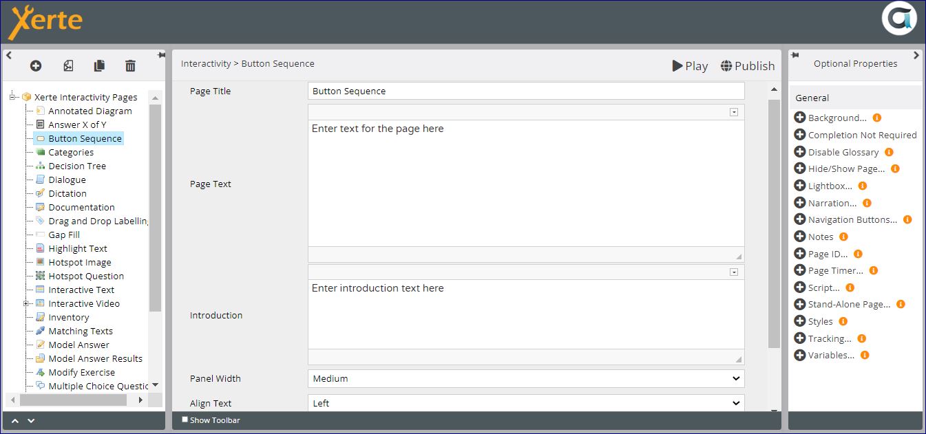or view at Xerte Page Types > Interactivity: Button Sequence (opens in new tab).