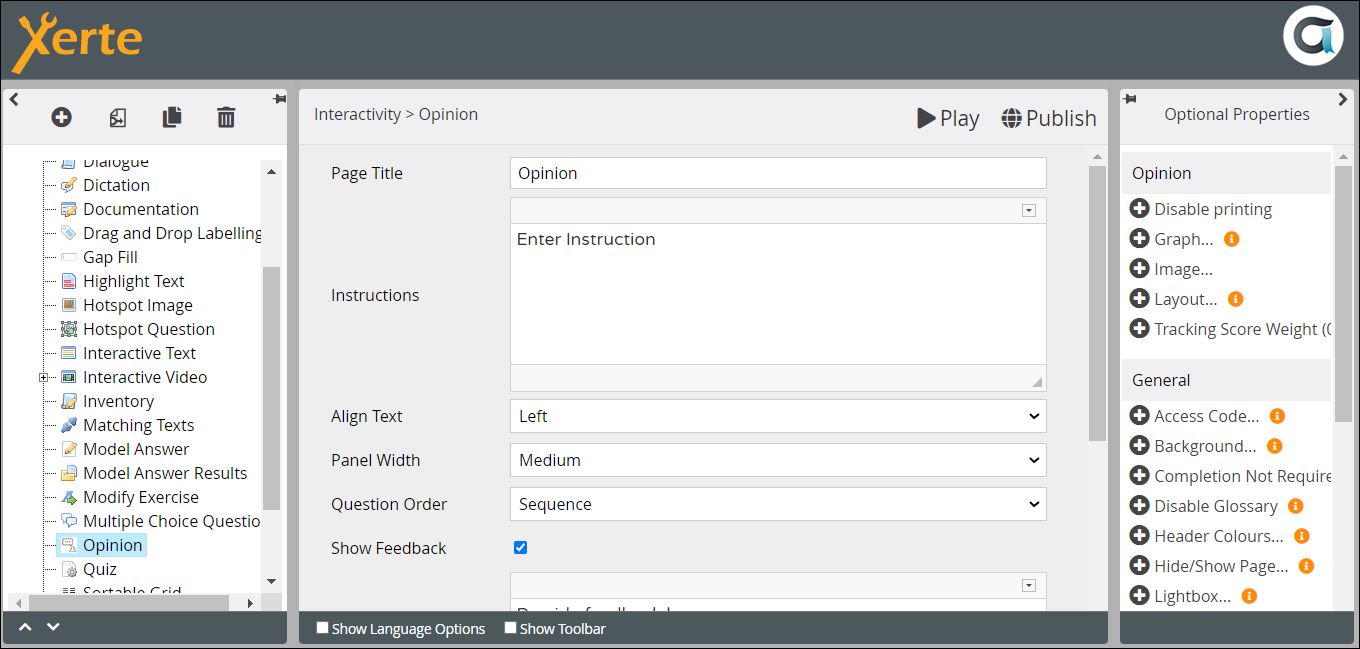 or view at Xerte Page Types > Interactivity: Opinion (opens in new tab).