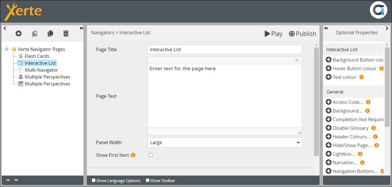 or view at Xerte Page Types > Navigators: Interactive List (opens in new tab).