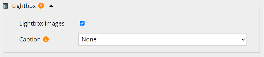 By default all images will open in a lightbox. This optional property can be used to turn on/off the lightbox functionality for this page only. There is an optional property at the project-level, which enables this to be done for all images in the project.