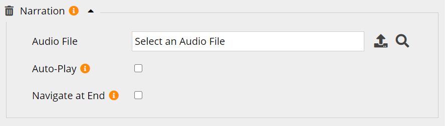 | Navigate at End | Go to next page at end of audio playback {on/off} | Checkbox | Automatically move to the next page when the audio is played to the end |