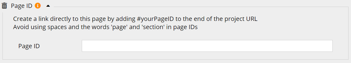This optional property enables creation of a custom page identifier in the page's URL. By default, the page ID is generated from the page number in the project.