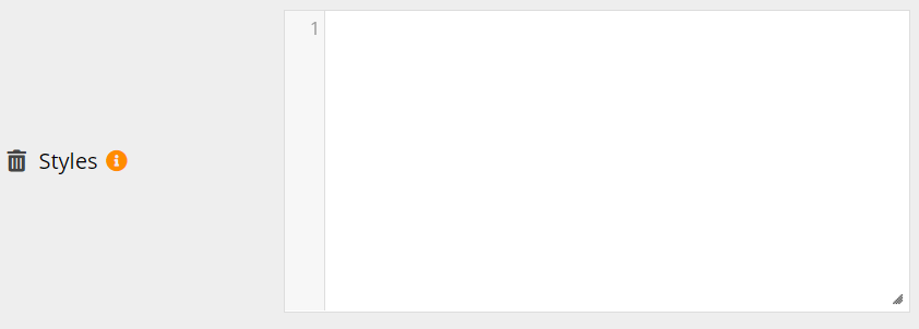 | Styles | Enter custom CSS code | Code | Add bespoke CSS to this page |