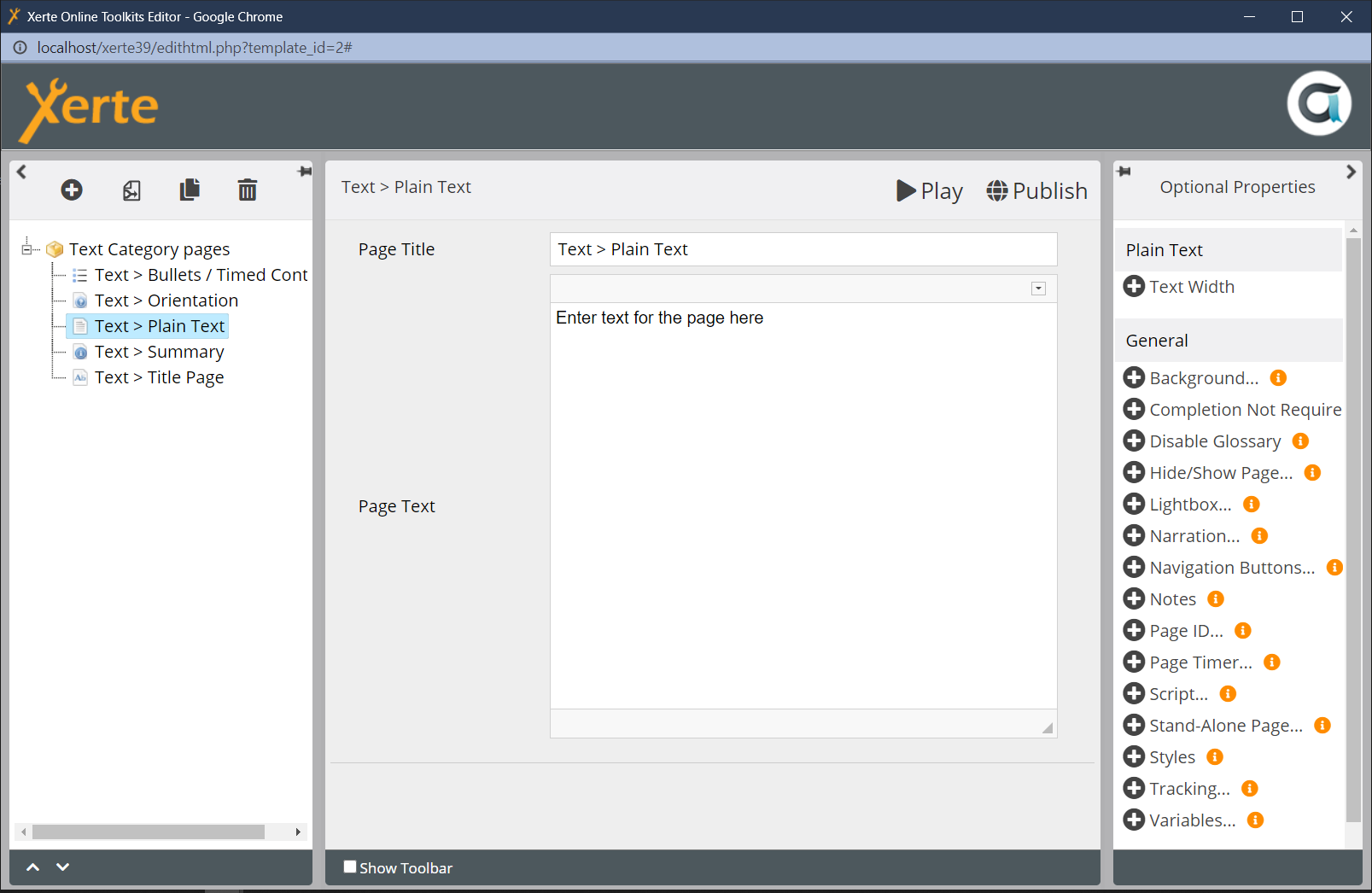or view at Xerte Page Types - Text: Plain Text (opens in new tab)