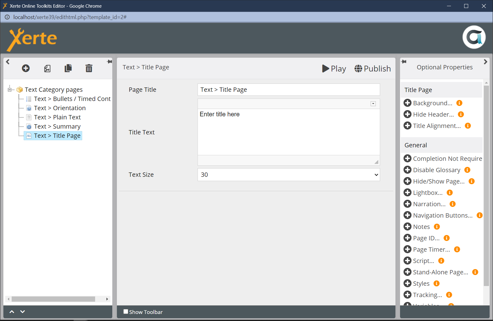 or view at Xerte Page Types - Text: Title Page (opens in new tab)