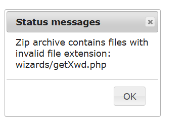 Importing an archive zip file is producing this status message, see attached image. The archive zip file was generated from the same user account on the same Xerte server. I can replicate the issue. Import offline zip is working as expected.