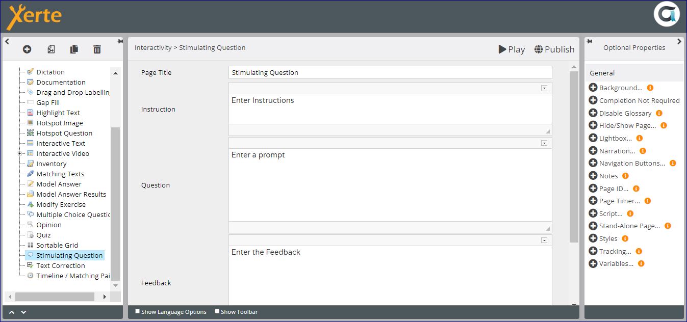 or view at Xerte Page Types > Interactivity: Stimulating Question (opens in new tab).
